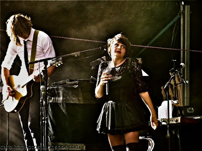 Deap Vally qui décroche la palme de "seconde belle découverte de ce deuxième jour de festival" !... Du rock-blues-garage à classer à côté des White Stripes, des Black Keys et de Janis Jopin, d'après les experts... Je n'en suis pas une et, pour être franche, je m'y perds pas mal dans toutes ces étiquettes (et pis surtout, je m'en fiche un peu, il faut l'admettre !). Ce qui est certain, c'est que ces filles ont une énergie à toute épreuve et extrêmement contagieuse et qu'elles ont certainement été le moment le plus "wockèndewoll" de ce début de journée ! En revanche, petite déception devant le concert de